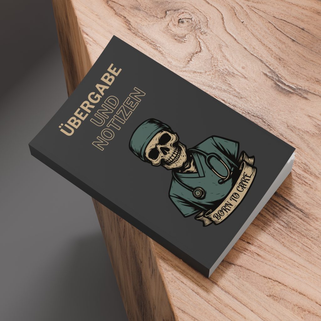 Dieses Notizbuch ist nichts für Zartbesaitete. Mit Totenkopf im OP-Look und der klaren Botschaft „Born to Care“ zeigst du, dass Pflege für dich mehr ist als nur ein Job. Hart, ehrlich, direkt – wie der Dienst selbst.