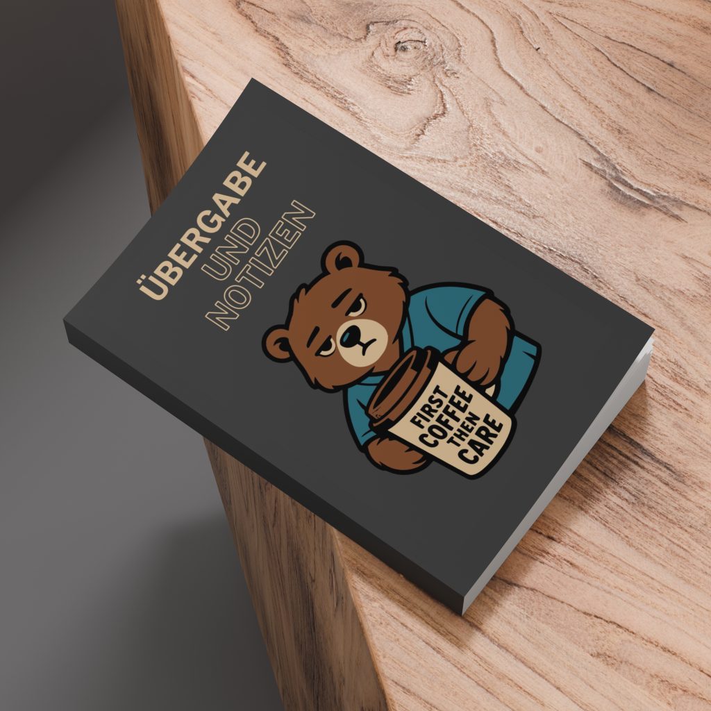 - 🐻 120 linierte Seiten – genug Platz für Übergaben und Kaffee-Erkenntnisse