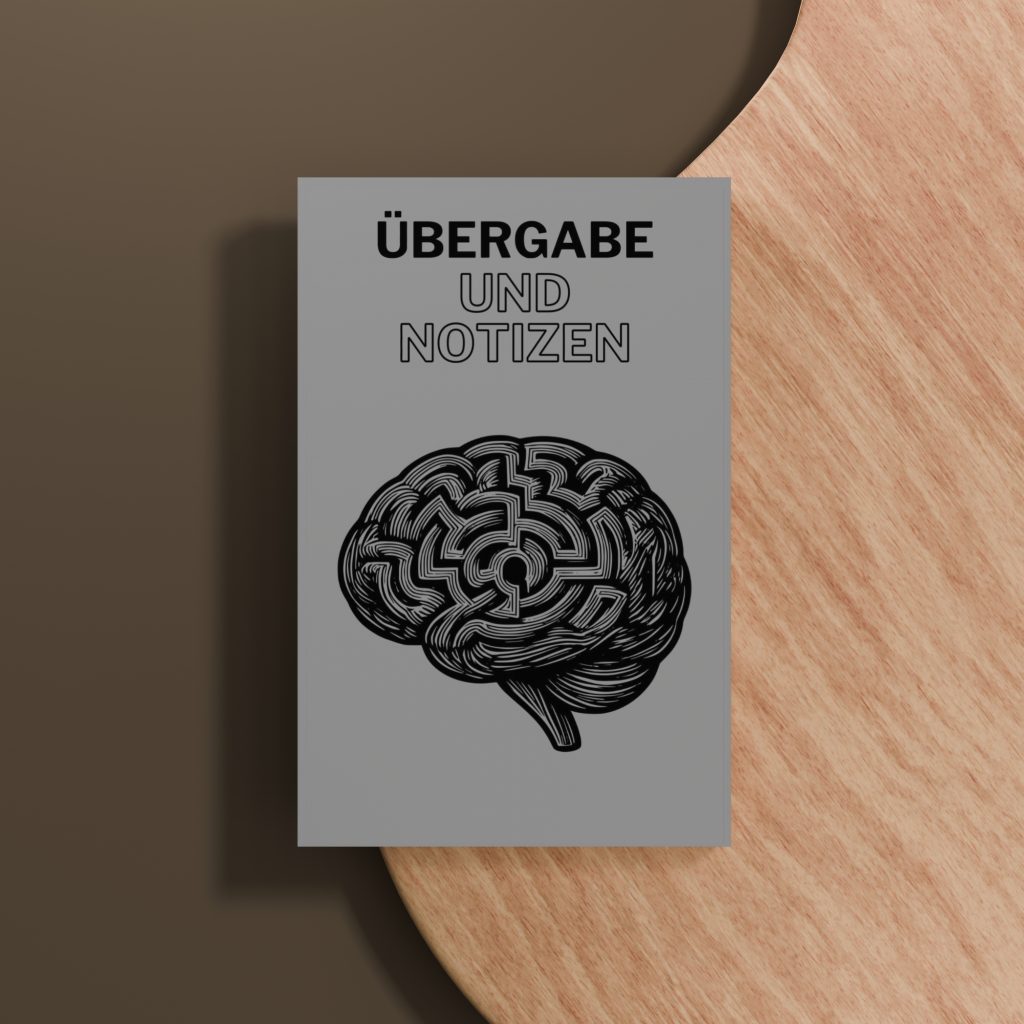 Dieses Übergabebuch ist wie dein Gehirn im Dienst: strukturiert, komplex und immer im Einsatz. Mit dem stilvollen Labyrinth-Gehirn-Cover bist du bestens ausgerüstet für jeden Gedankengang – ob Übergabeoder Notizen.