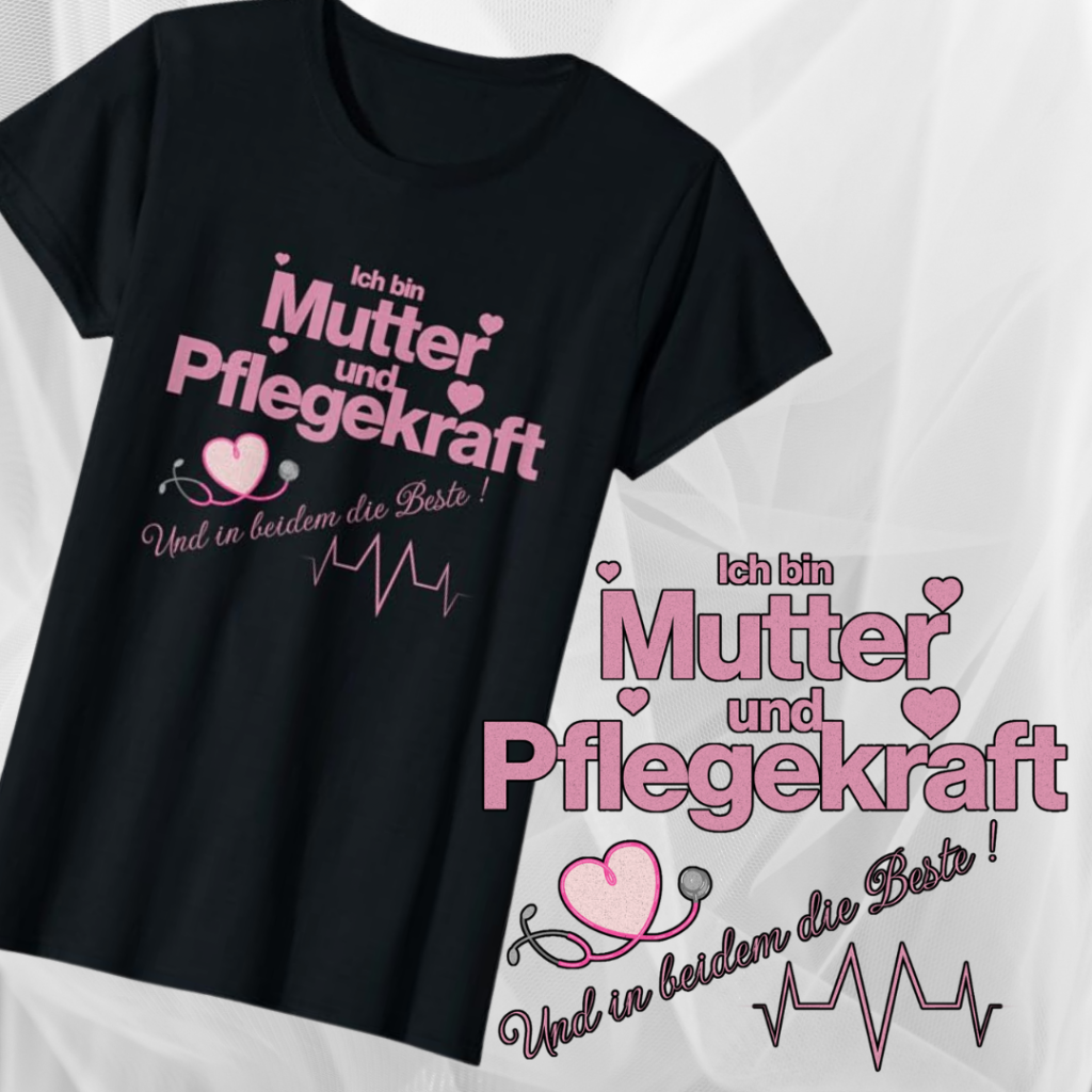Zwei Rollen. Eine Heldin. Dieses Shirt ist eine Liebeserklärung an alle, die Familie und Pflege jeden Tag unter einen Hut bringen – mit Stärke, Herz und Organisationstalent.